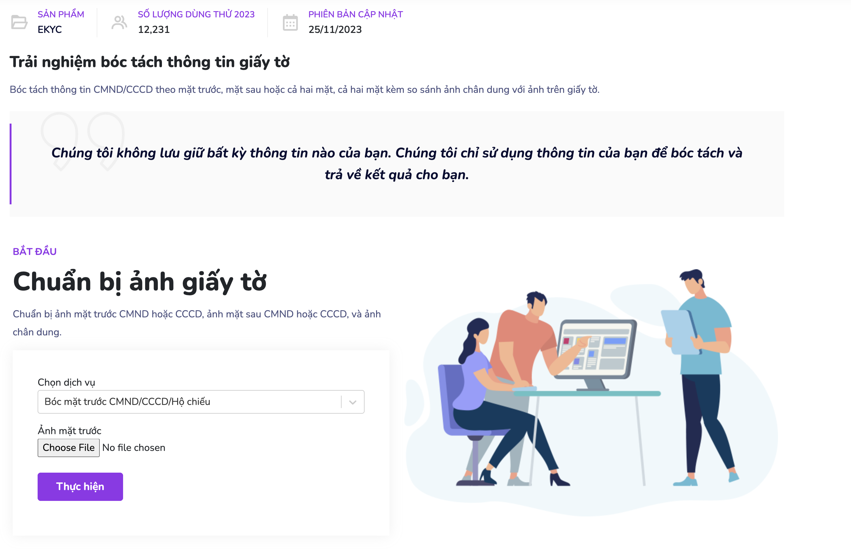 Thu thập và xác thực giấy tờ, khuôn mặt, chống gian lận; hỗ trợ onboarding khách hàng và tuân thủ quy định.